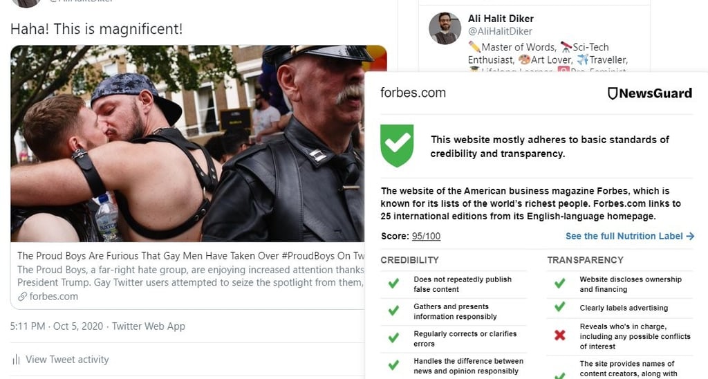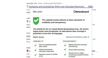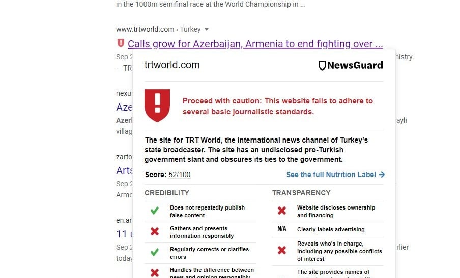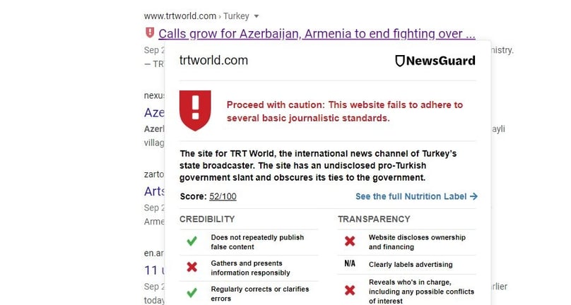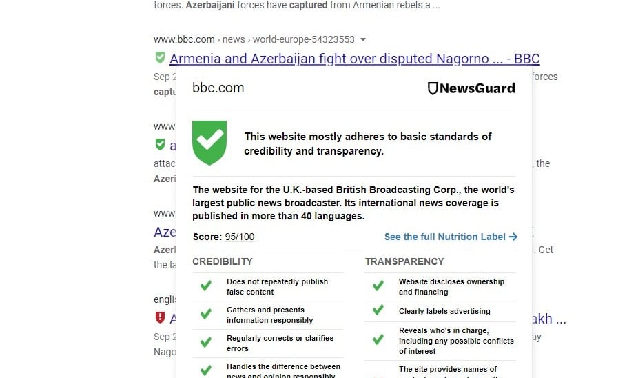 You see the ratings of the news sources as shown in the images below with the free version of NewsGuard. By the way, I would not recommend using these tools to make the final decisions about the reliability of the content. These can only help to a certain degree. As a result, just as reliable sources may give false information, a less reliable source can also distribute correct information.